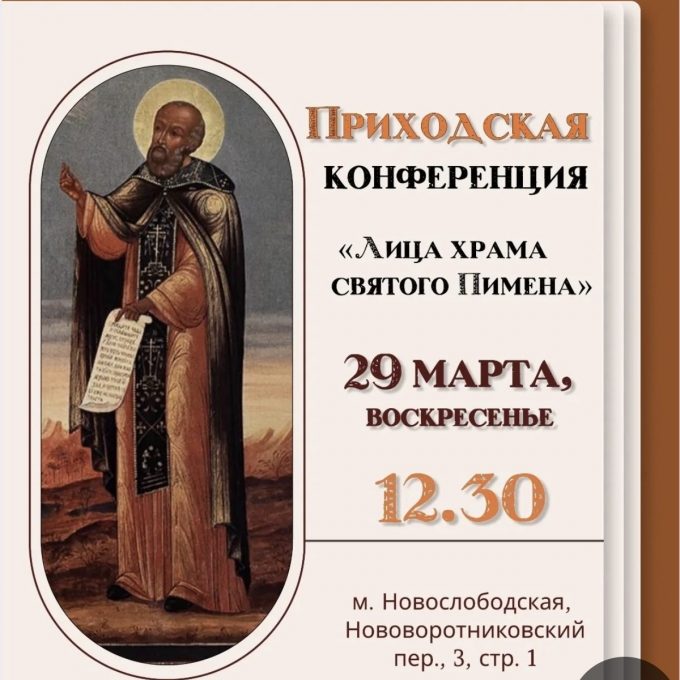 29 марта - конференция: "Лица храма прп. Пимена". Приглашаем